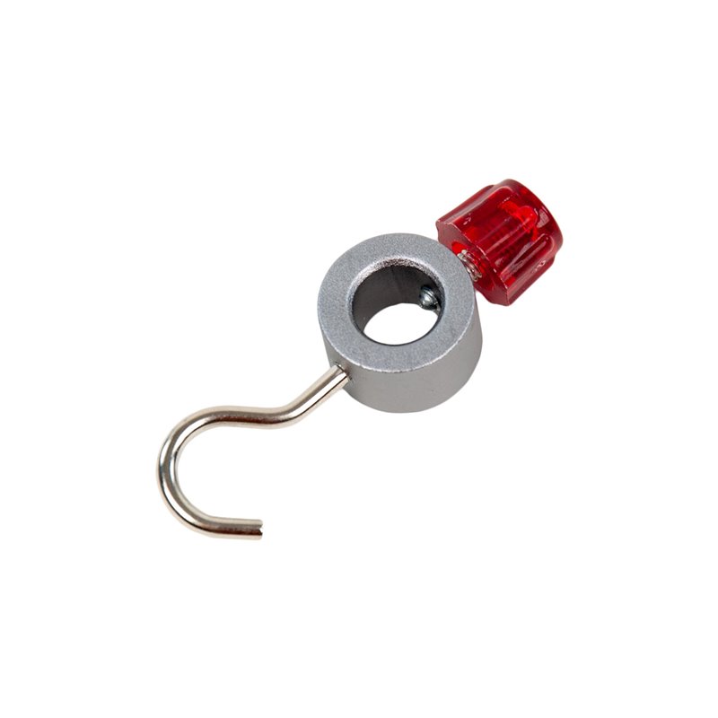 Alumíniumgyűrű acél kampóval és rögzítőcsavarral, kör keresztmetszetű rudakhoz való rögzítéshez